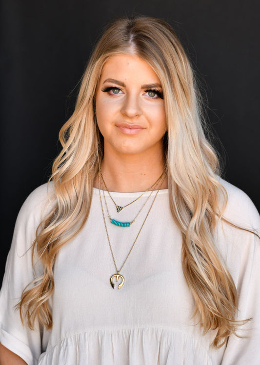 West & Co. Burnished Gold 3 Tier Necklace with Triangle, Turquoise Beads & Naja