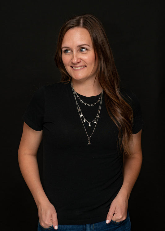 West & Co. Triple Layered Sliver Chain, Stars and Cowboy Boots Necklace