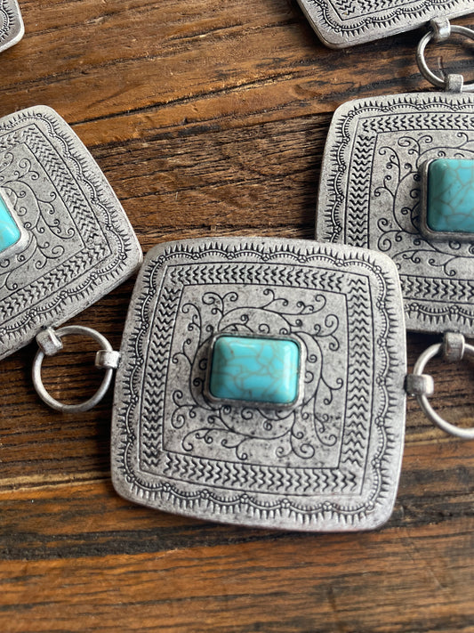 Squared Concho Belt with Turquoise colored accent