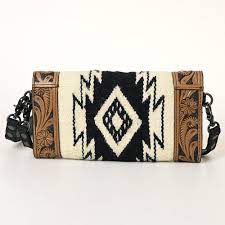 American Darling Tooled Leather Saddle Blanket Aztec Crossbody Purse ~ 236N