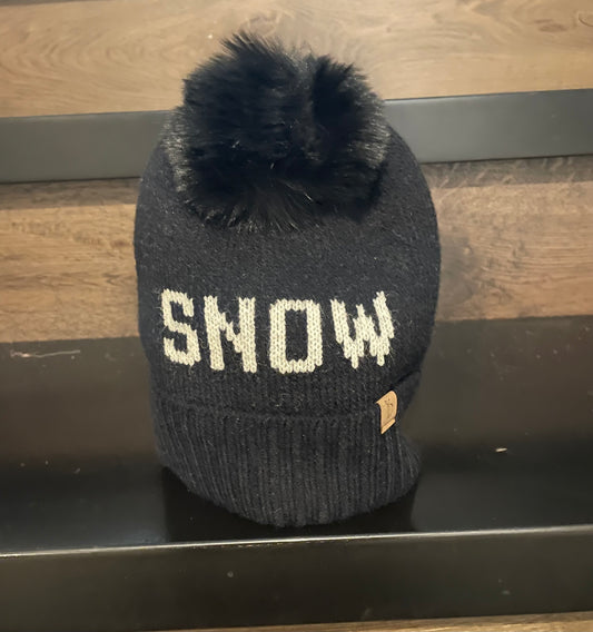 Upcycled C.C Knitted Faux Fur Pom Hat Blk