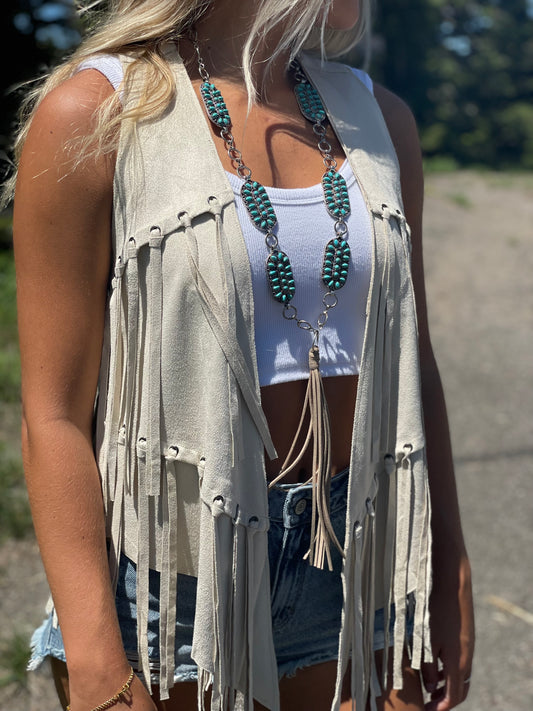 Turquoise blue and silver Heart necklace with leather band