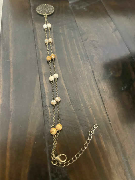 Turquoise Bead Bracelet with silver crystal charm