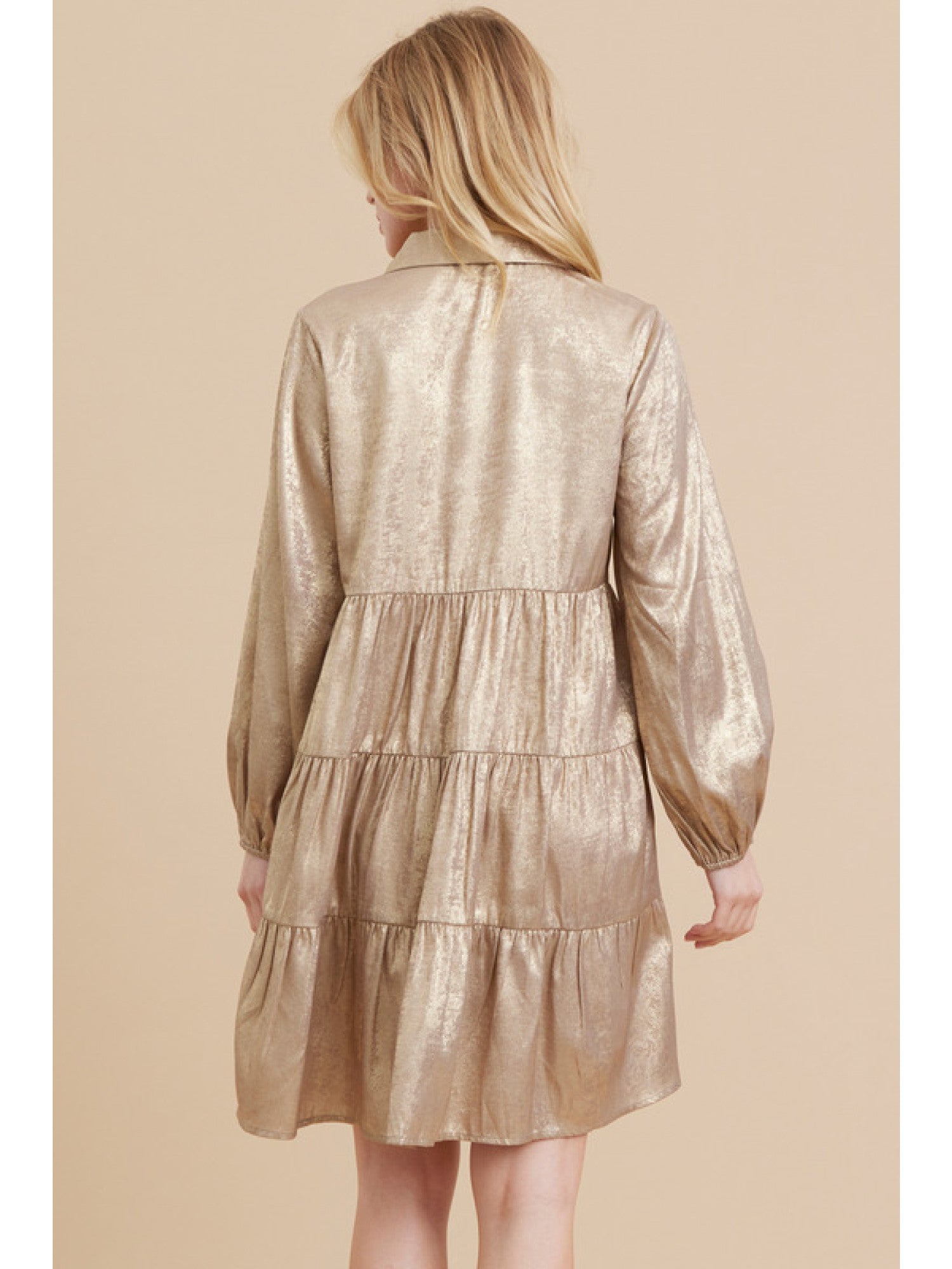 Elevate your style with our stunning Metallic Baby Doll Dress. Its non-sheer lightweight fabric ensures comfort and breathability, perfect for any occasion. Whether you're attending a party or simply stepping out for a casual day, this dress will make you stand out with its unique metallic shine.