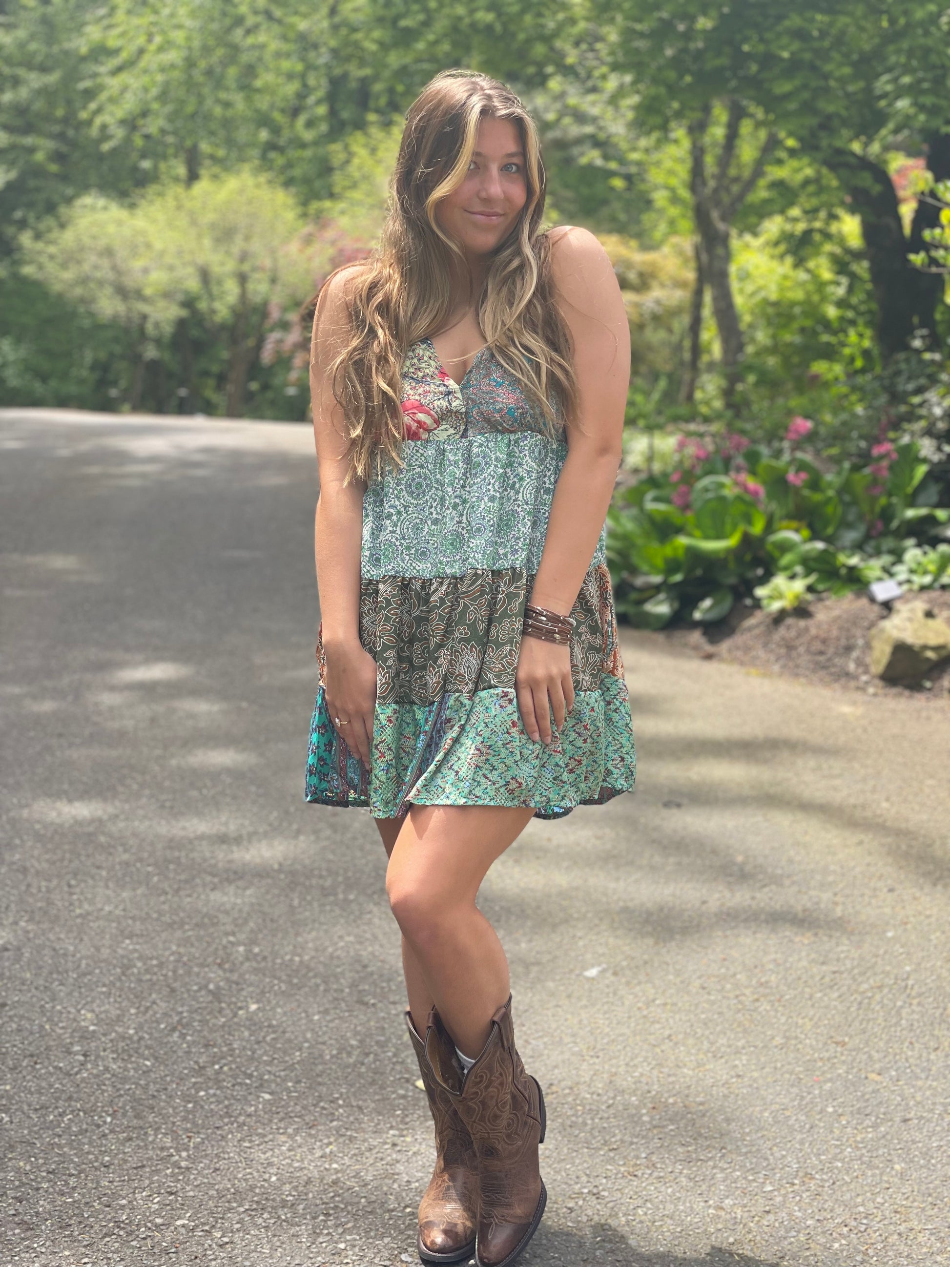 Features multi-layer tiered detailing to create a comfortable loose fit. V neckline for that added feminine appeal. Slip over style.