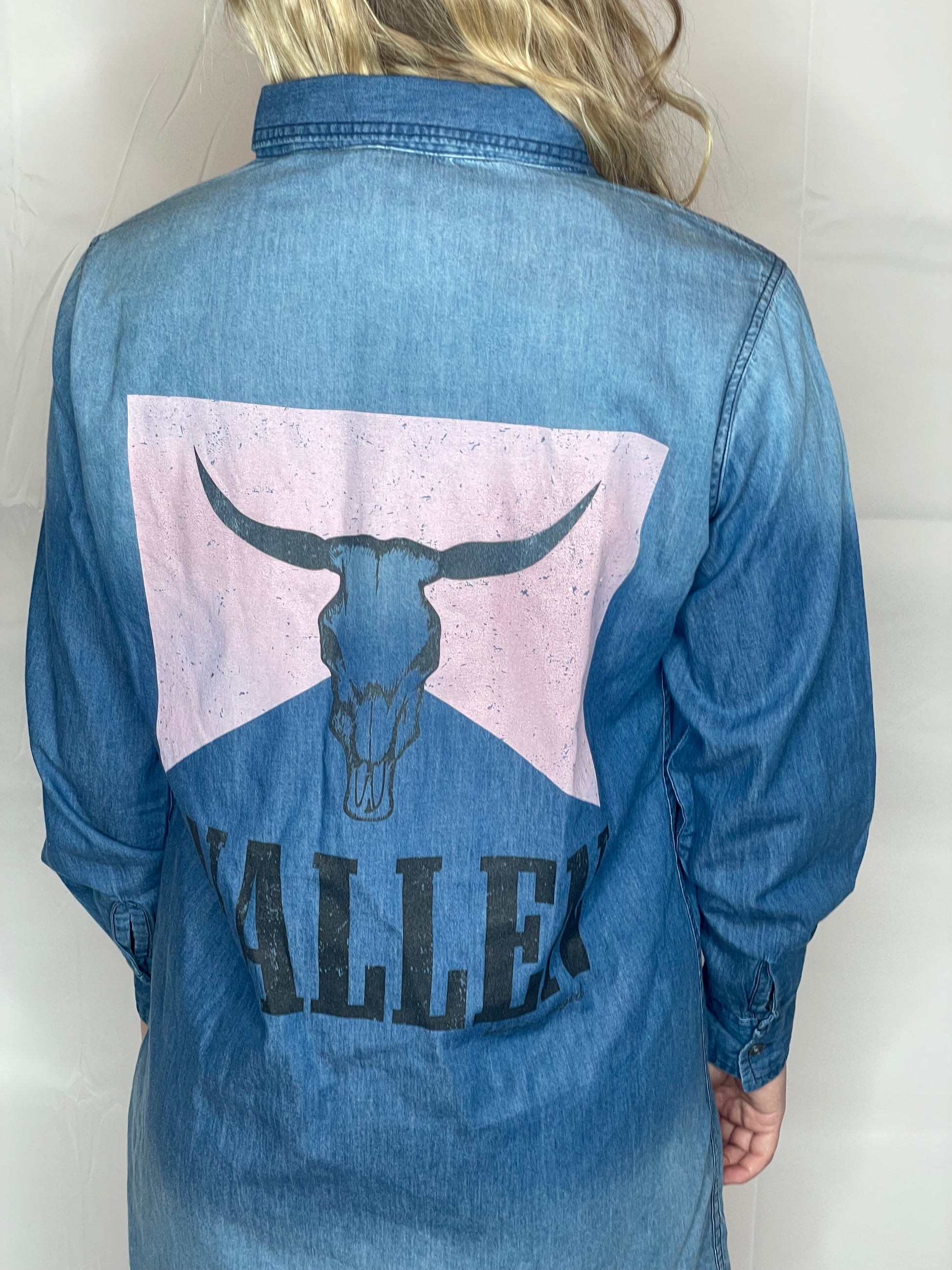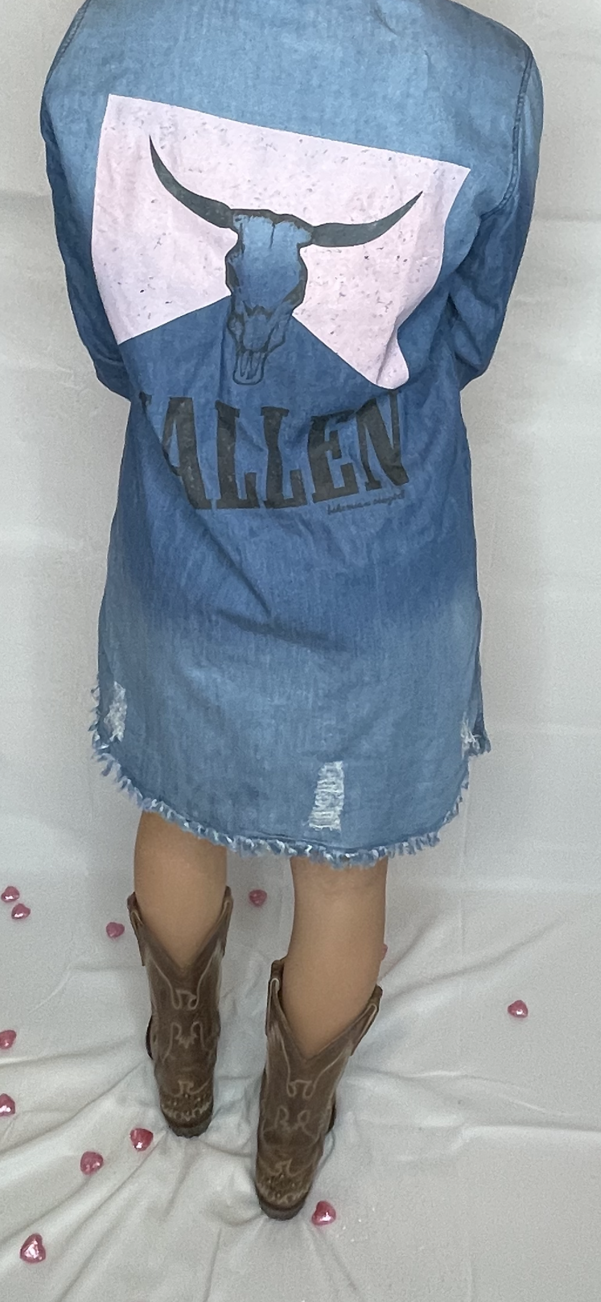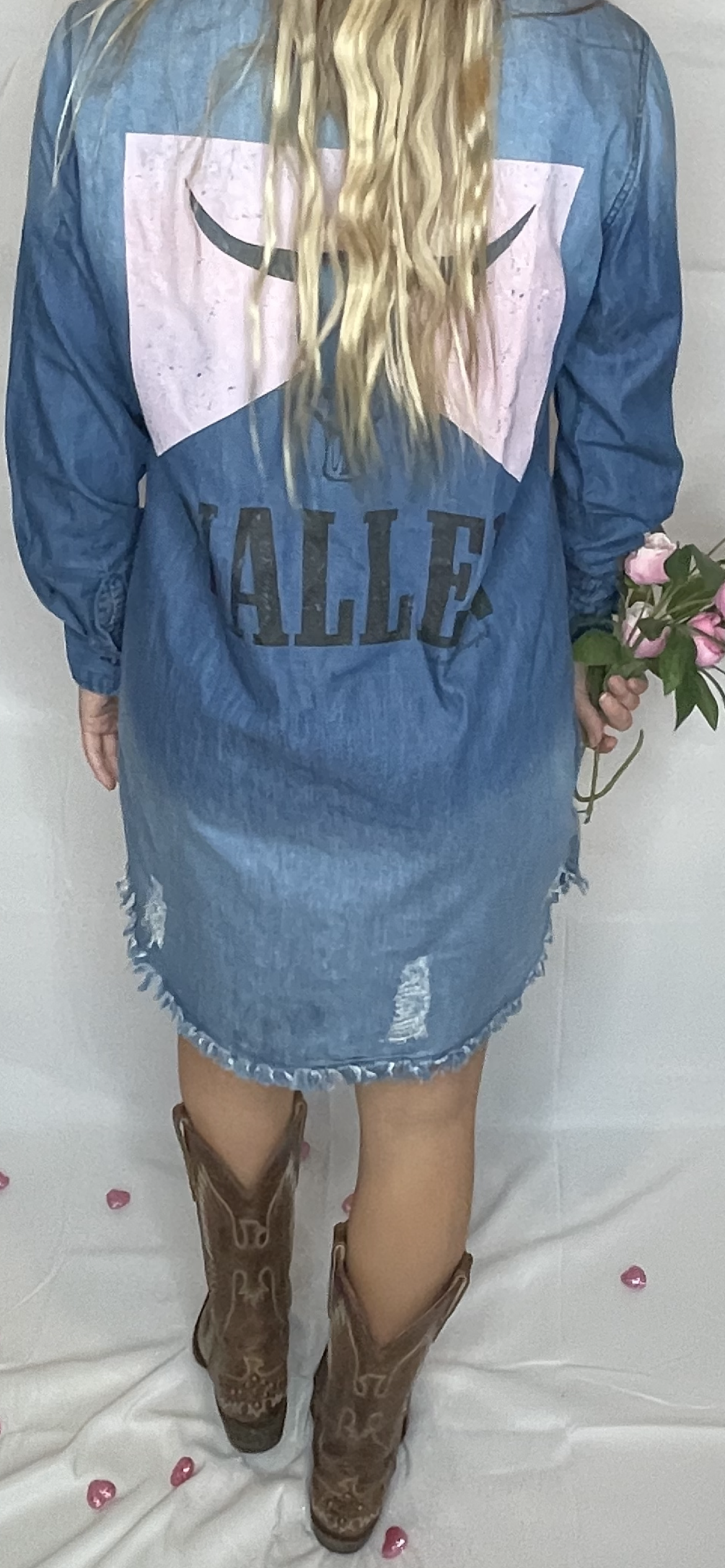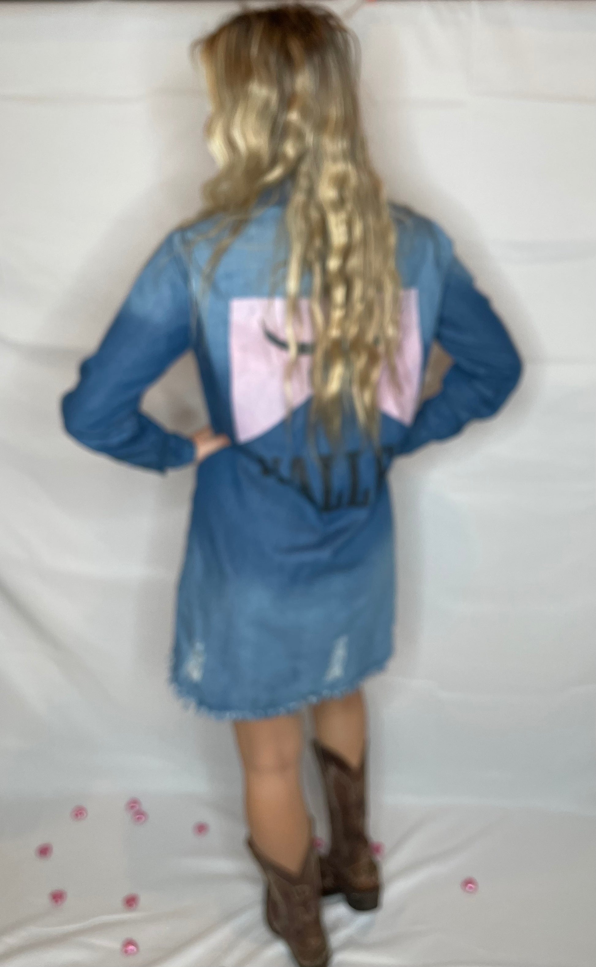 These Graphic Denim dresses look fabulous on! Wear as a dress or open with T-shirt and jeans/leggings.