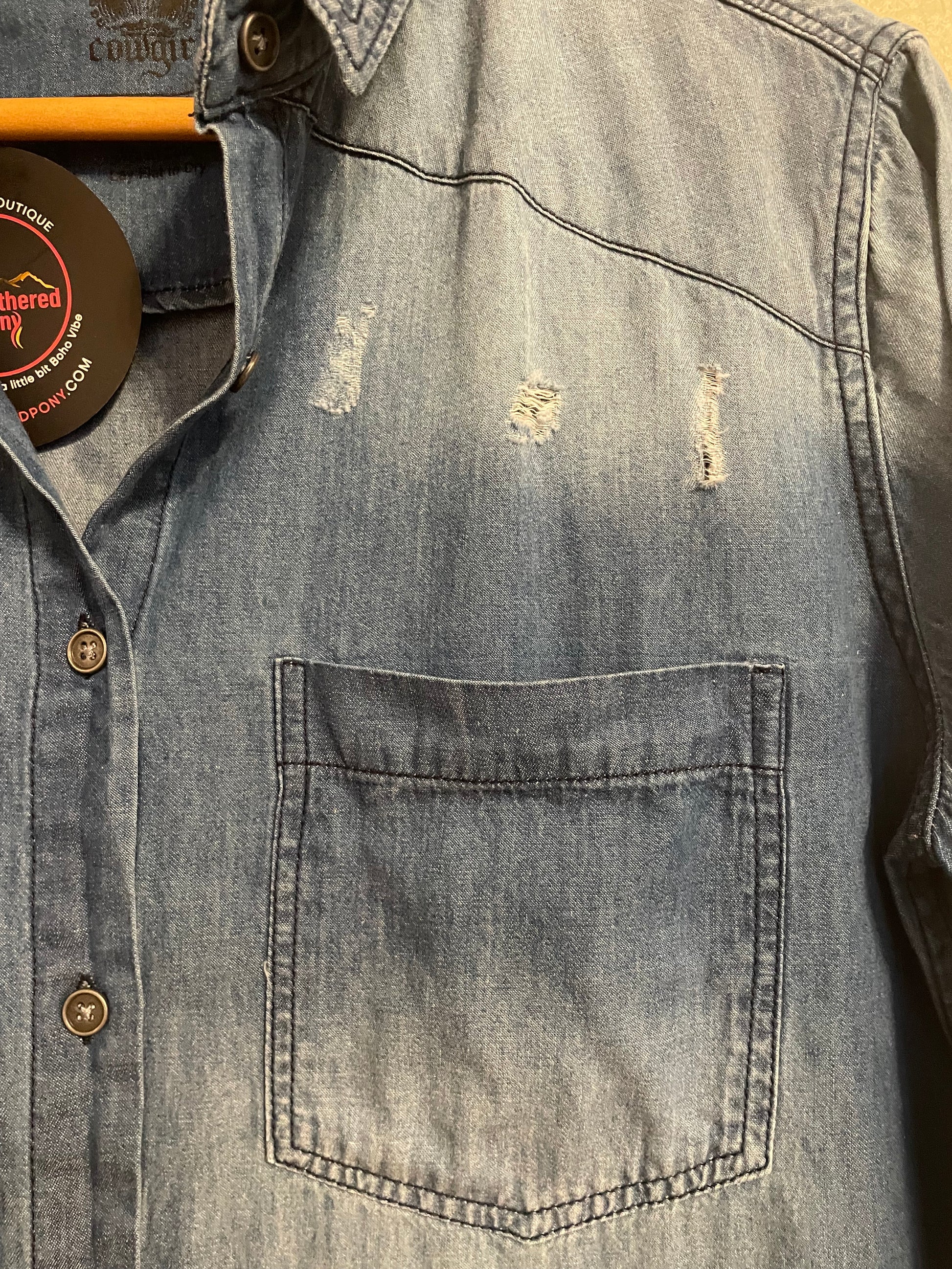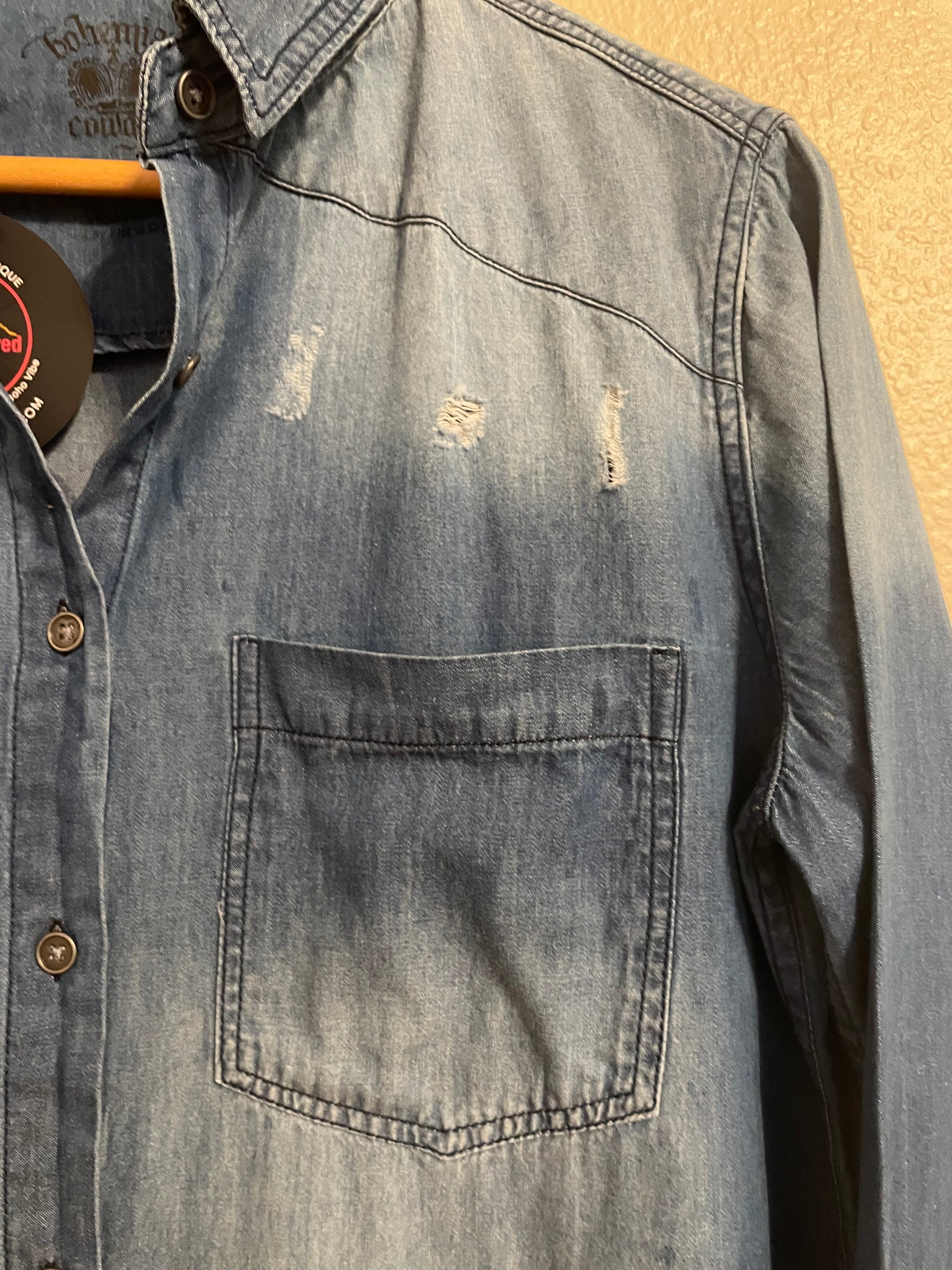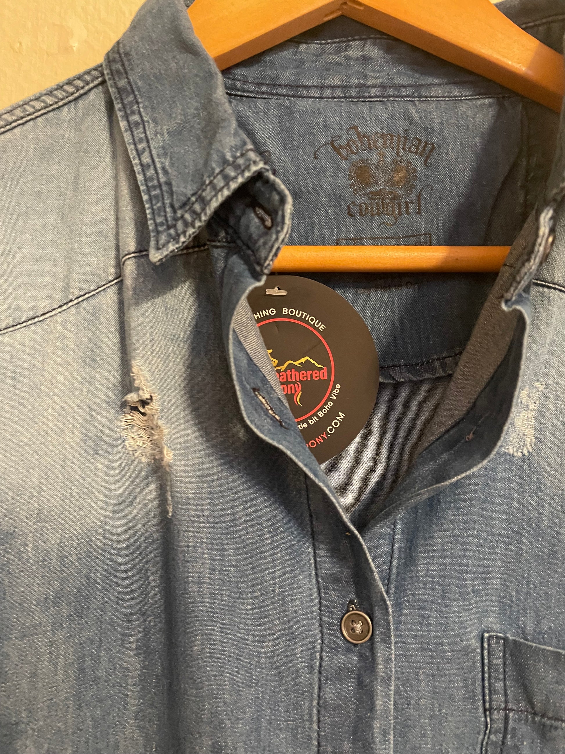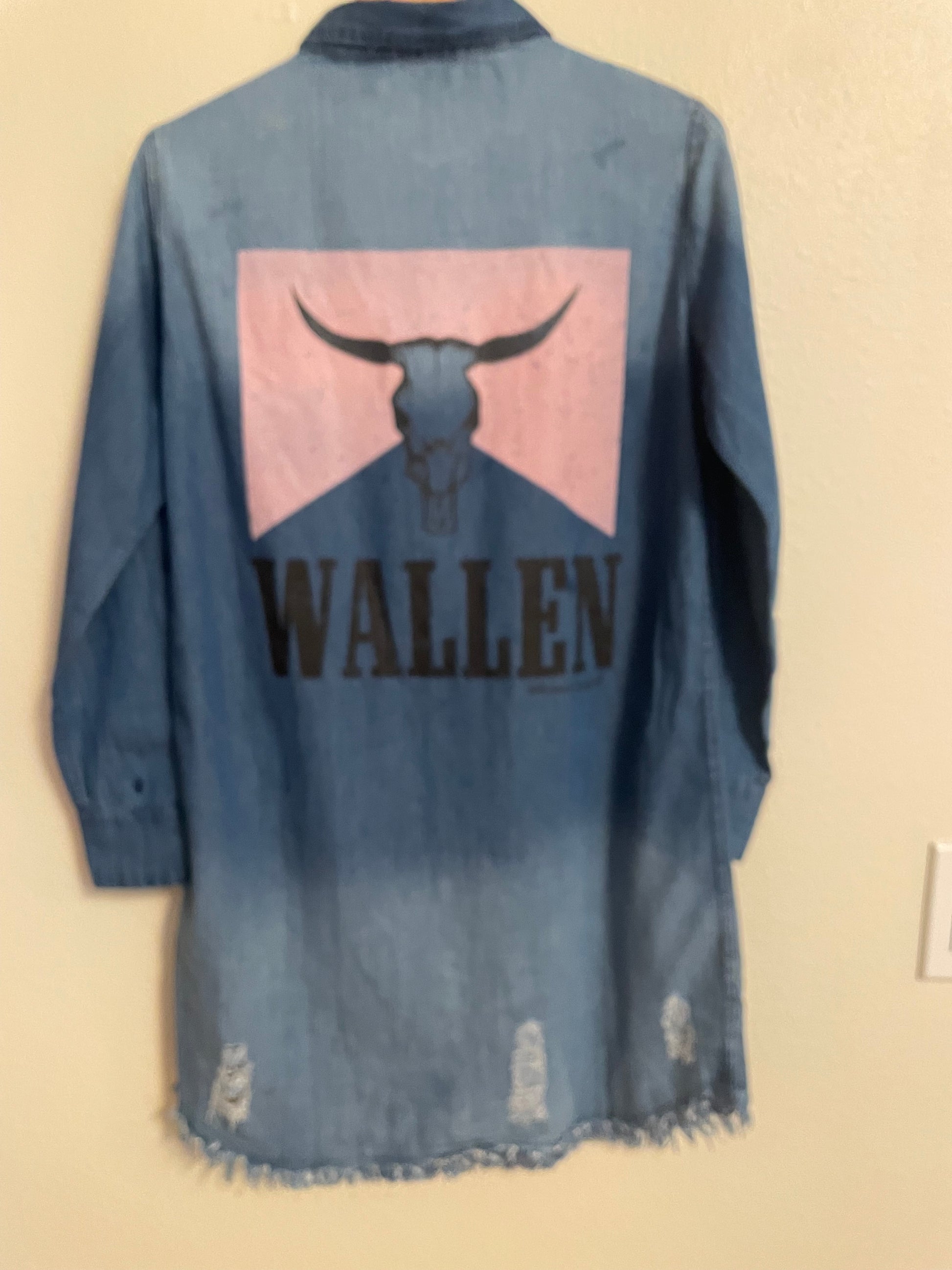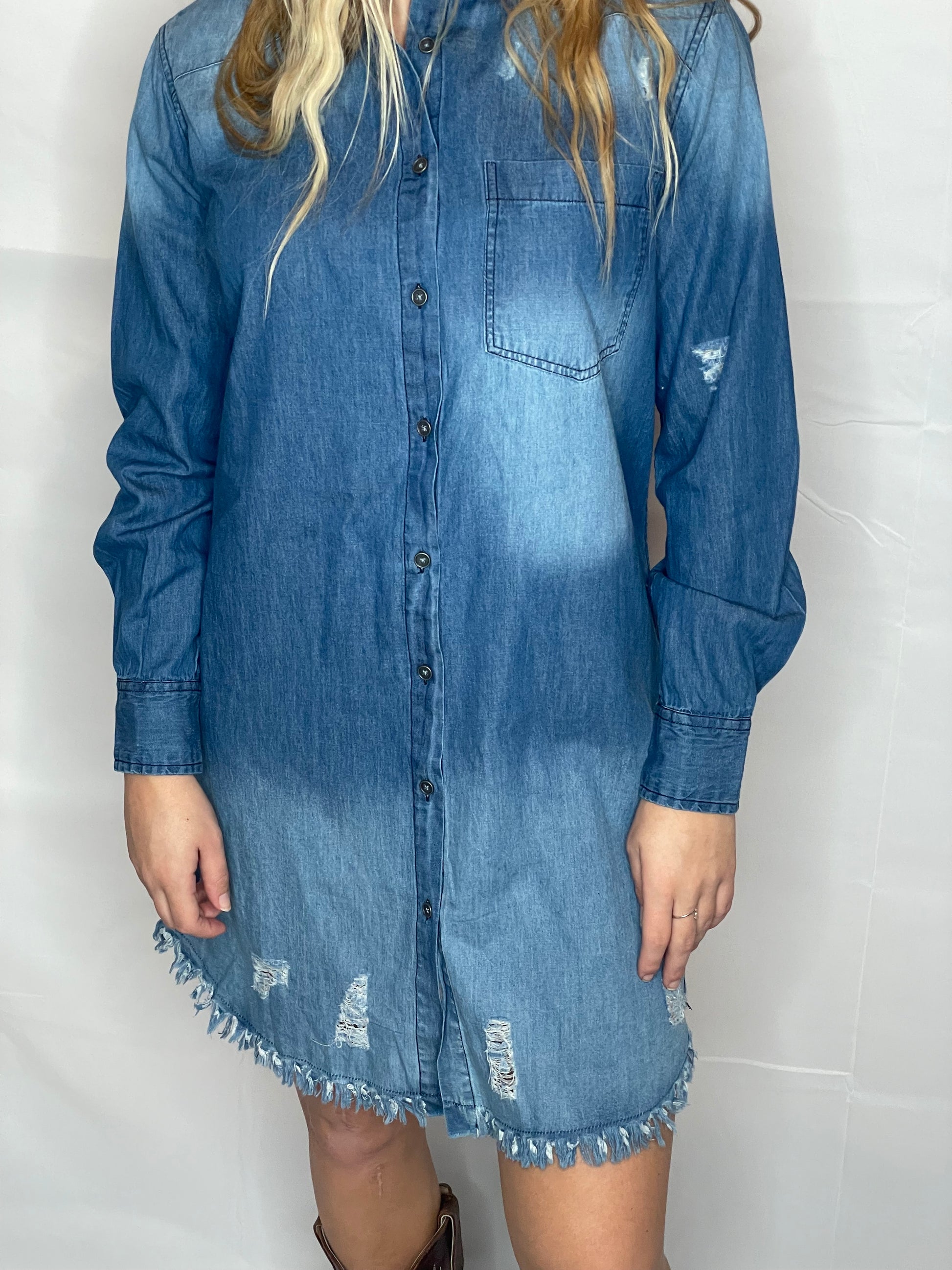 These Graphic Denim dresses look fabulous on! Wear as a dress or open with T-shirt and jeans/leggings.